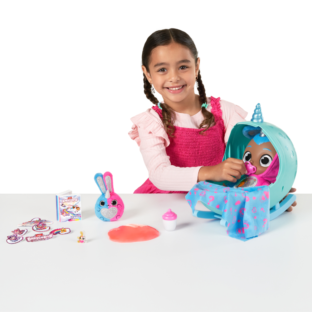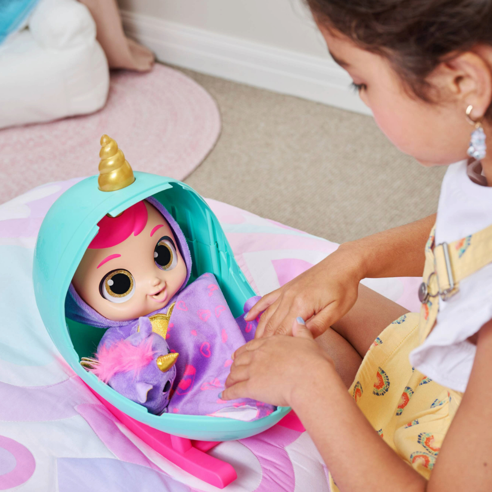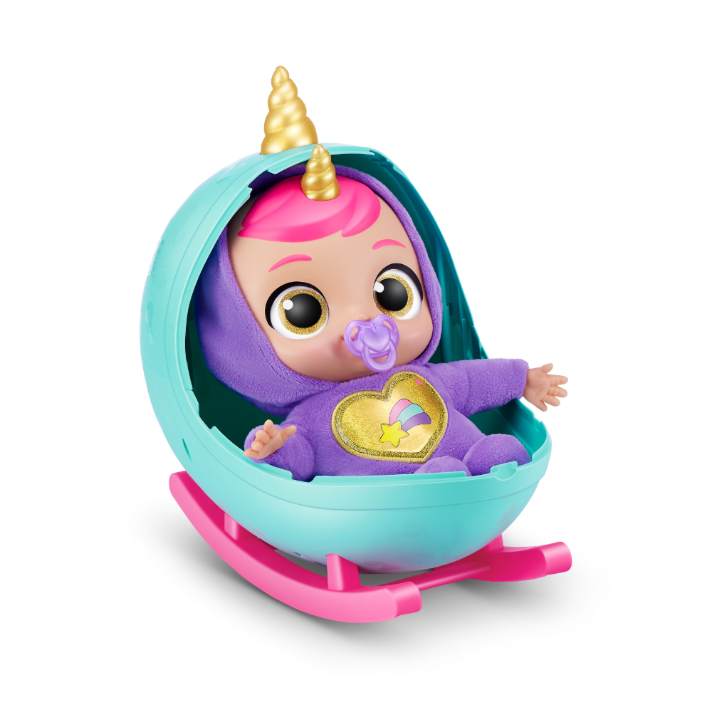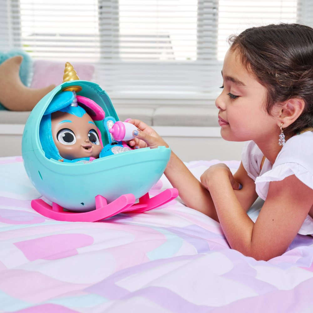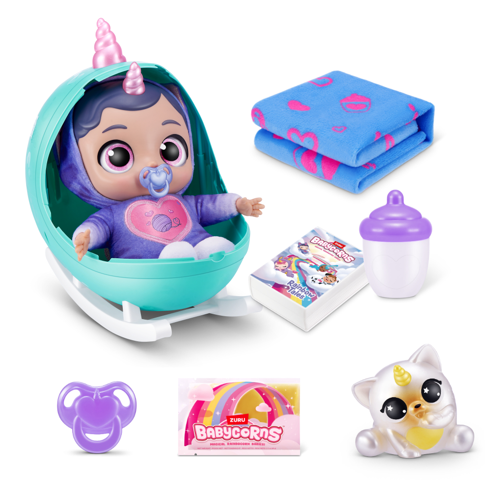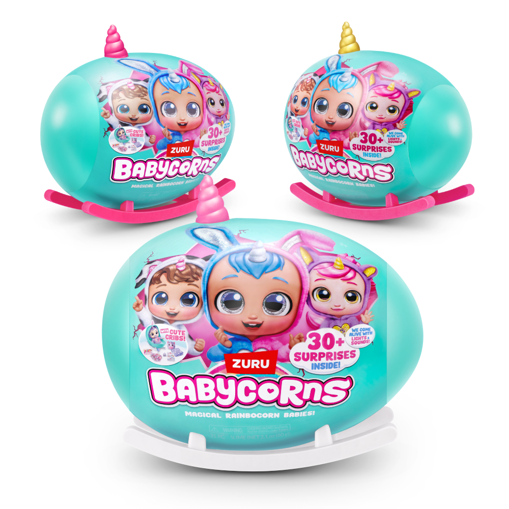 Babycornsi stižu u jajastom pakiranju koje se pretvara u kolijevku kako bi imali udobno mjesto za odmor. Unutar jaja-kolijevke pronaći ćeš preko 30 iznenađenja koja će ti pomoći da se sa svojim Babycornsom igraš dugo i s puno maštovitih scenarija. Kada plače dodaj mu dudu kako bi se umirio, nahrani ga bočicom mlijeka ili umotaj u dekicu kako bi mu bilo toplo, a možeš mu pročitati i priču laku noć za ljepši i mirniji san.