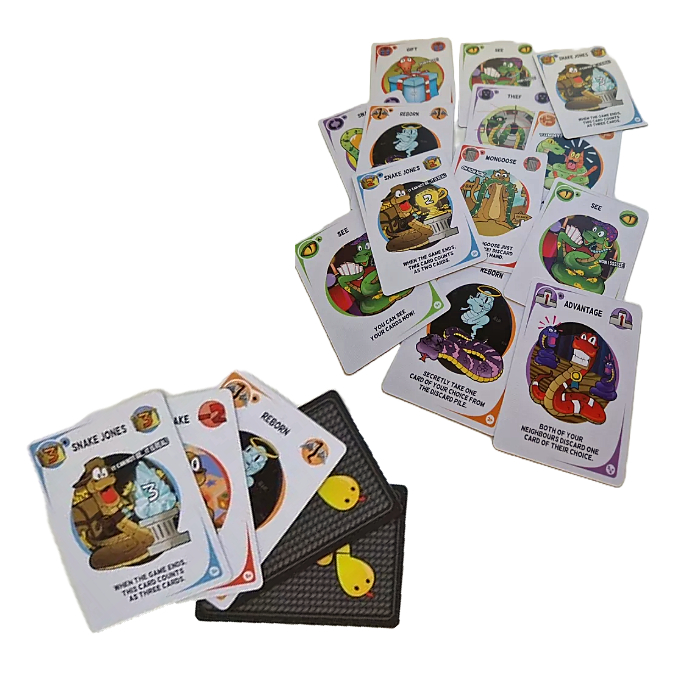 Tražiš igru koja je brza, zabavna i puna blefiranja? Upoznaj Sneaky Snakes – kartašku igru u kojoj su svi malo lukavi, a pobjeda ide onome tko uspije složiti najdužu zmiju i usput pomrsiti planove suparnicima!