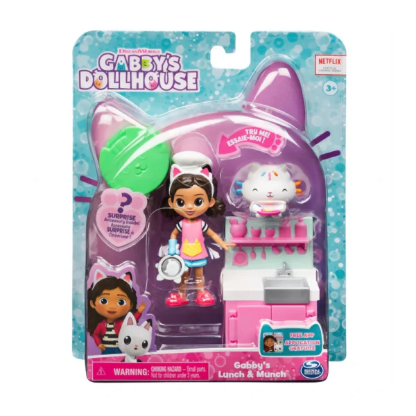 Gabby’s Dollhouse Cat-tivity kuharica Gabby set za igru dio je maštovite linije dječjih igračaka napravljenih prema popularnoj Netflix animiranoj seriji. Tko je Gabby? Radnja prati avanture djevojčice Gabby koja se uz pomoć magičnih ušiju pretvara u animirani lik. Tako postaje dio svijeta šarenih mačjih likova koji obitavaju u njenoj kući lutaka. Gabby je pametna, pozitivna i vesela djevojčica. Uvijek pomaže svojim omiljenim macama prolaziti kroz razne izazove. Svladavanje emocija, novih vještina te izazovnih životnih iskustava Gabby sa svojim macama uspješno svladava. Zabava, tuga, bol, uspjeh i neuspjeh – svi ti trenutci dio su života svakog djeteta. Gabby s njenim prijateljima pristupa tematici lagano i probavljivo.