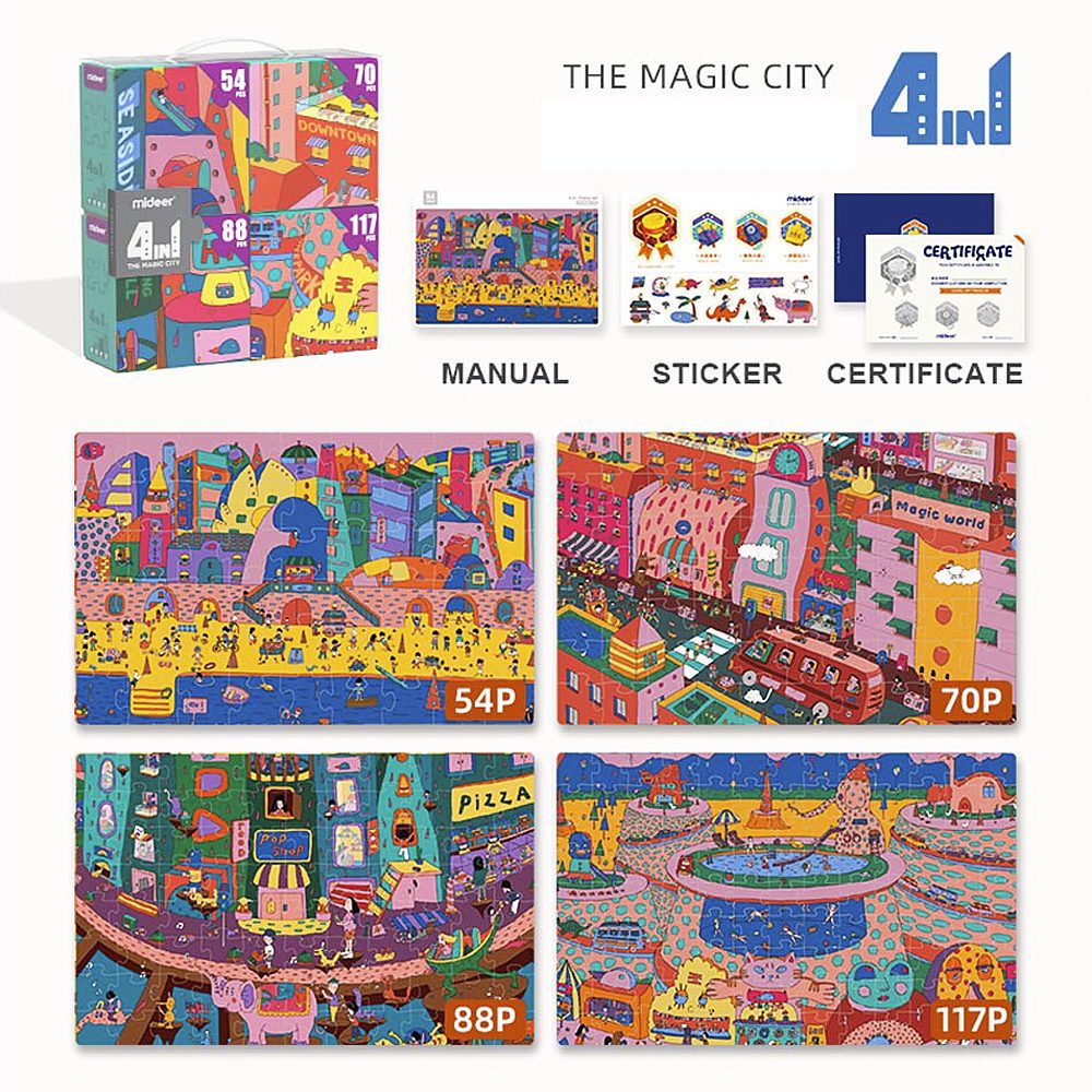 Uz ovaj jedinstveno ilustrirani set MiDeer puzzli učenje i igra stapaju se u jedno. Set se sastoji od 4 vrste puzzli, koje imaju različite stupnjeve težine. Na taj način dijete se postepeno privikava na koncept slaganja i pri tome stječe važne kognitivne vještine poput logičkog zaključivanja. Maleni prsti također ravijaju fine motoričke vještine na ovaj način.