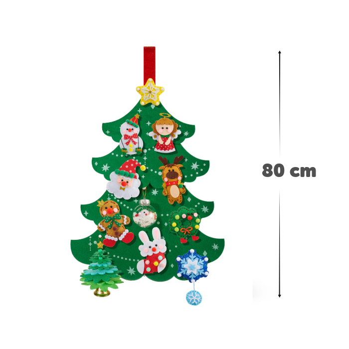 • Sadržaj pakiranja: božićno drvce od filca (visina: 80 cm), 12 paketića s iznenađenjima za izradu blagdanskih ukrasa, materijali i upute za svaki ukras