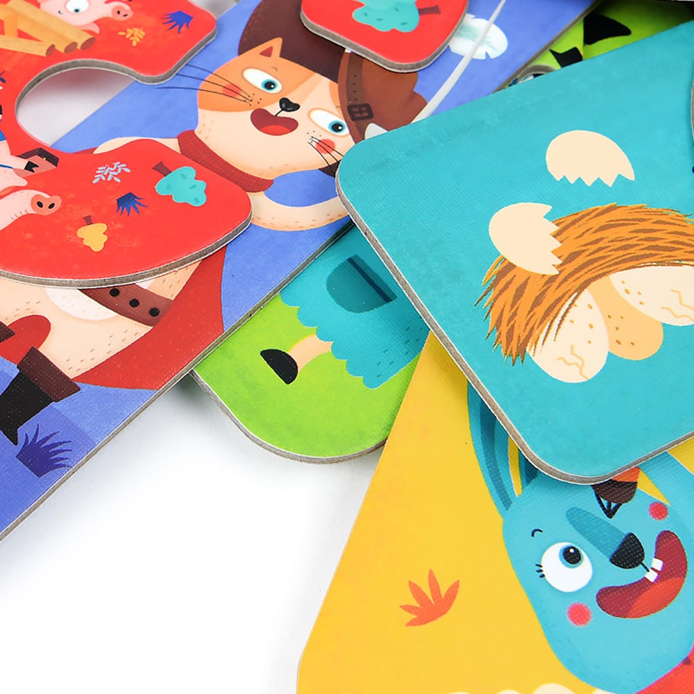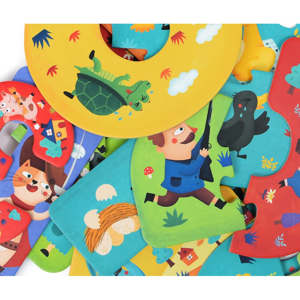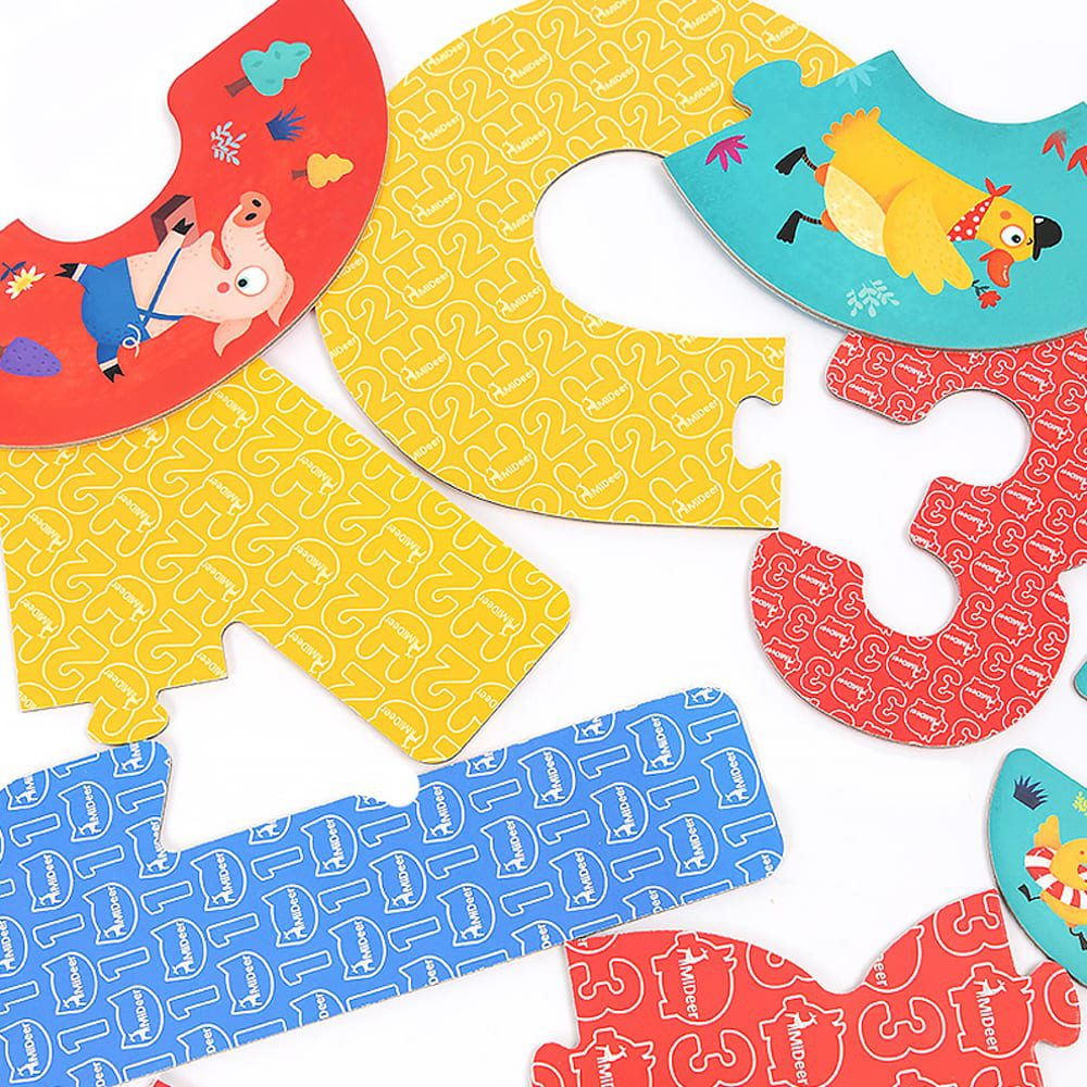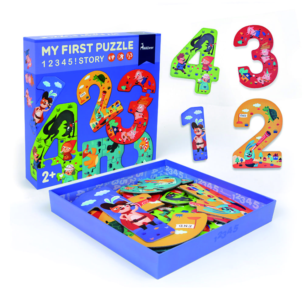 Kako se igra? Svaki broj ima i toliko komada pa je jedinica iz jendog komada, dvojka iz dva… Svaki komad puzzle ilustriran je motivima svima dobro poznatih bajki. Puzzle su velikih dimenzija te su dodatno ojačane kako bi imale dugotrajnost. Napravljene od potpuno prirodnih materijala i boja ove puzzle idealan su izbor kako bi uveli svojeg mališana u šareni i zabavni svijet slaganja puzzli!