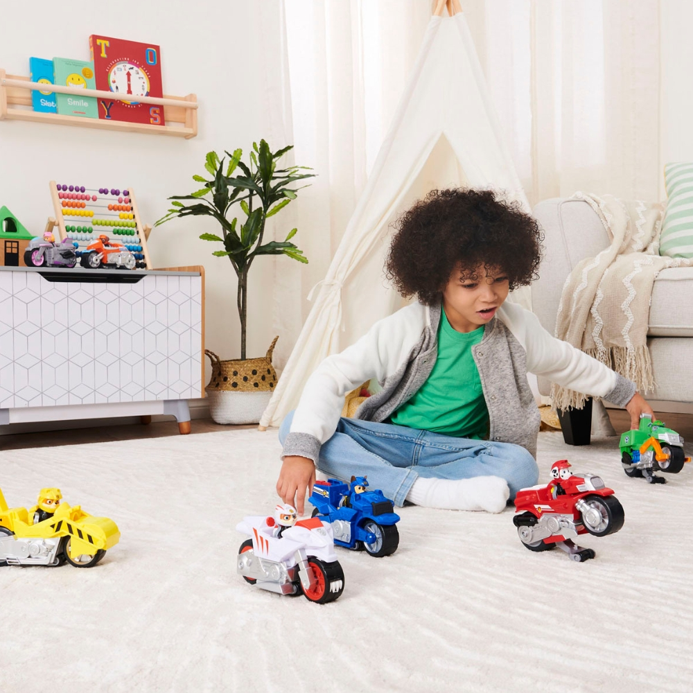 Svako vozilo svojim izgledom podsjeća na prava vozila iz animiranog serijala, a potpuni doživljaj pruža njihova pokretljivost – povuci vozilo unatrag i gledaj kako juri prema naprijed. Pomozi vrijednim psićima spasiti dan!