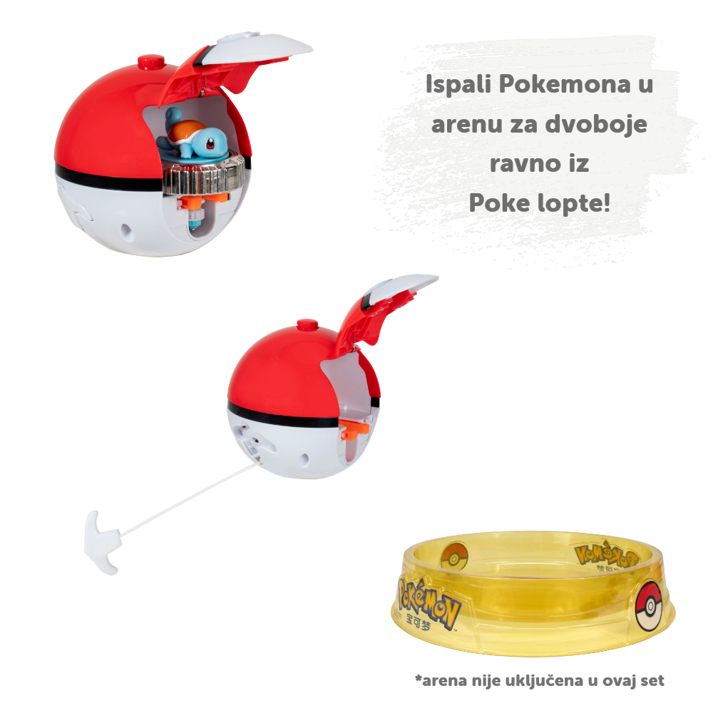 - Sadržaj: 1x figura Squirtlea sa zvrkom, 1x Poke lopta za lansiranje zvrka u arenu